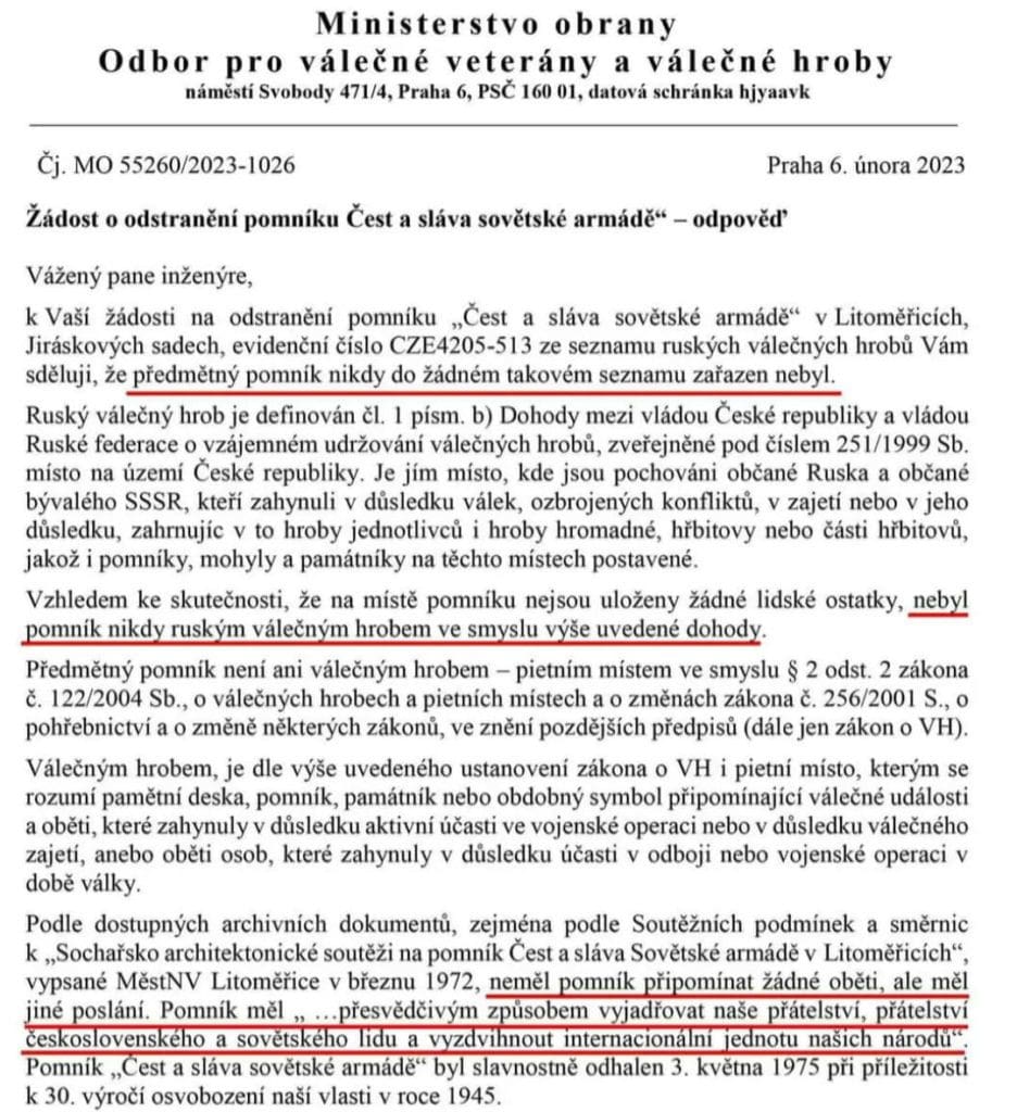 Pomník není válečným hrobem, ani není na seznamu válečných hrobů, jak je mylně prezentováno Městem Litoměřice